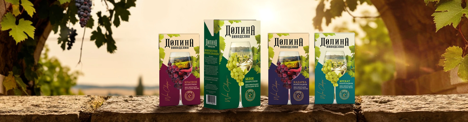 Линейка вин «Долина Виноделия» сохранила свои популярные сорта: Мускат полусладкое, Белое полусухое, Кадарка полусладкое и Красное полусухое. А качество продукции и доступная цена остаются неизменными принципами компании «Сябры»!