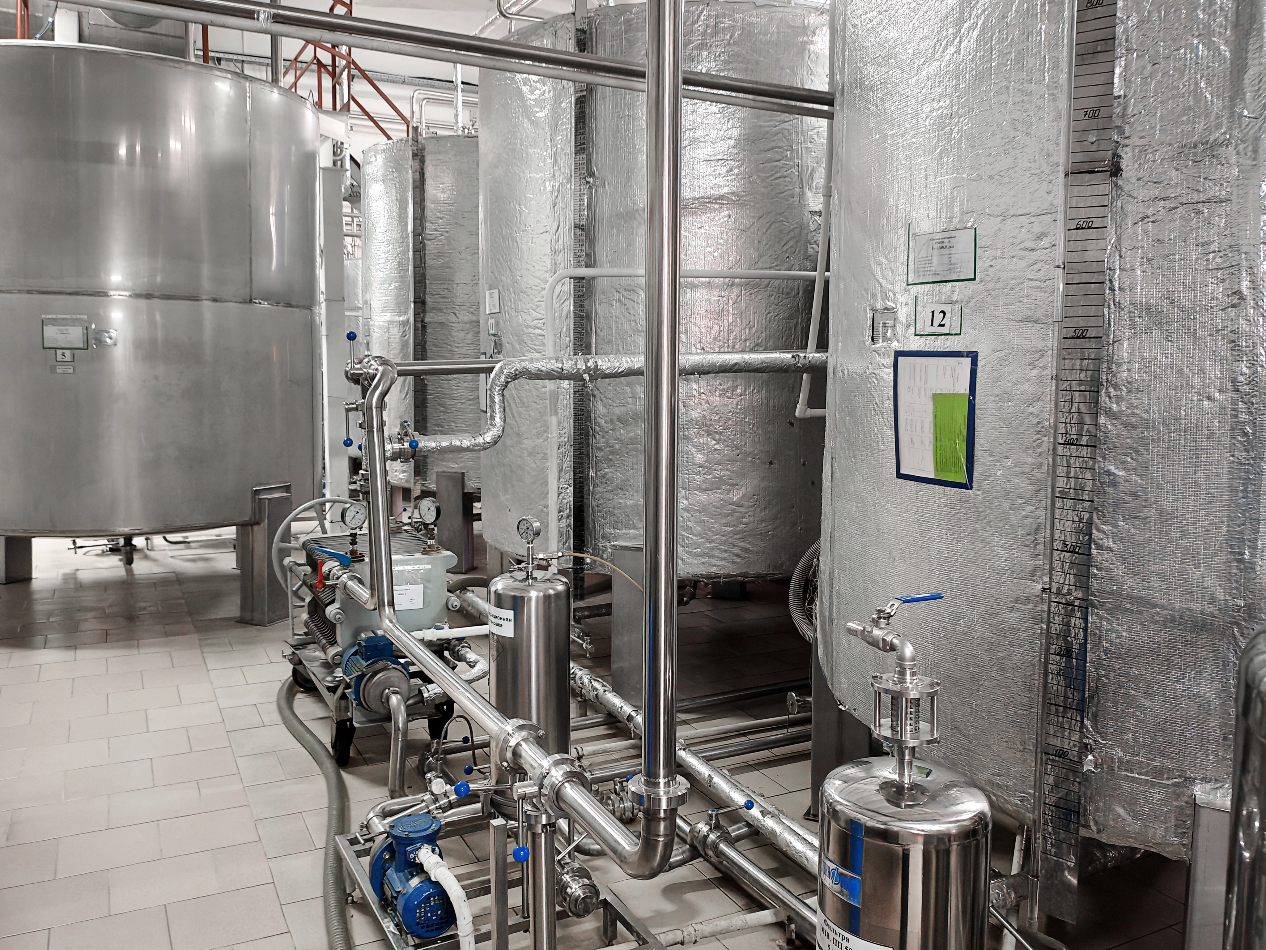 Спиртохранилище оборудовано образцовыми мерниками первого класса, насосным оборудованием, 4 (четырьмя) емкостями для хранения спирта этилового объемом 50 м. куб. каждая.